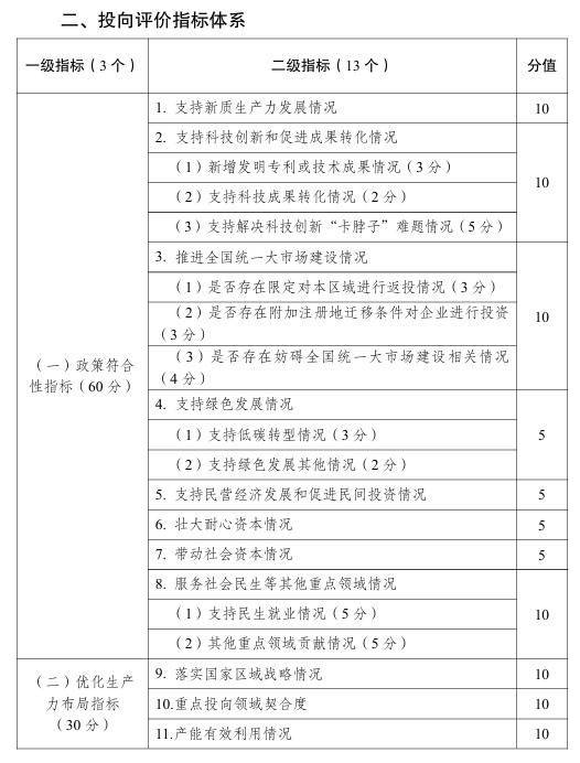 (一)政策符合性指标,主要评价基金在支持新质生产力发展、支持科技创新和促进成果转化、推进全国统一大市场建设、支持绿色发展、支持民营经济发展和促进民间投资、壮大耐心资本、带动社会资本、服务社会民生等方面发挥的作用;